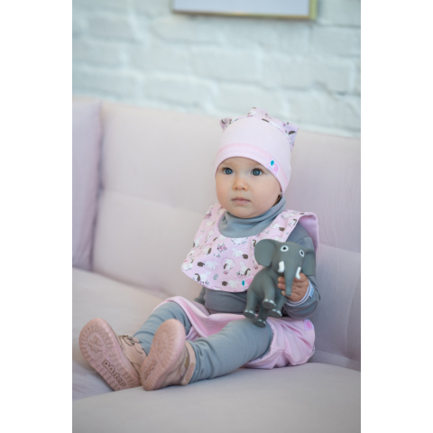 A Peggy Baby csősapka igazi kis vagány megjelenést biztosít a kicsinek. Két, színvilágában összeillő pamutanyag került összedolgozásra. A bund része rugalmasabb pamutból készül, így nem csúszkál a gyermek fején. A sapka úgy is