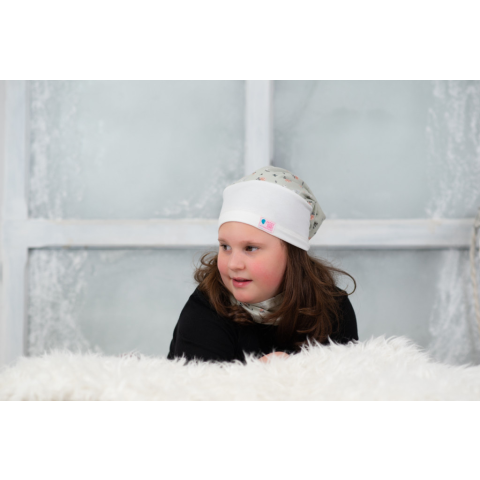 A Peggy Baby csősapka igazi kis vagány megjelenést biztosít a kicsinek. Két, színvilágában összeillő pamutanyag került összedolgozásra. A bund része rugalmasabb pamutból készül, így nem csúszkál a gyermek fején. A sapka úgy is