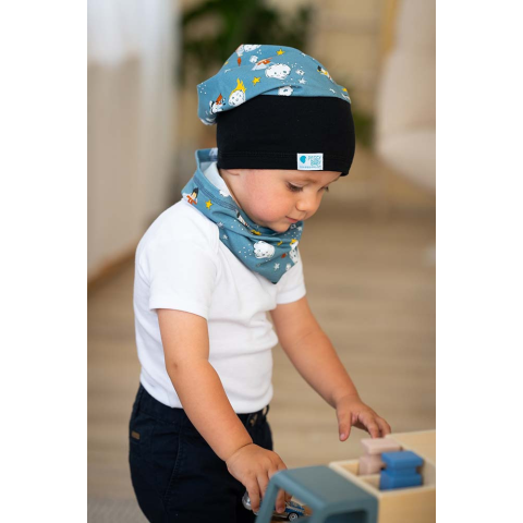 A Peggy Baby csősapka igazi kis vagány megjelenést biztosít a kicsinek. Két, színvilágában összeillő pamutanyag került összedolgozásra. A bund része rugalmasabb pamutból készül, így nem csúszkál a gyermek fején. A sapka úgy is