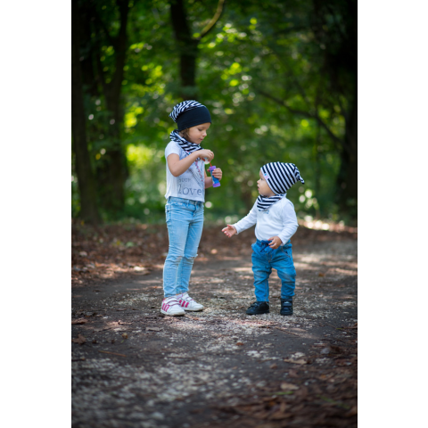 A Peggy Baby csősapka igazi kis vagány megjelenést biztosít a kicsinek. Két, színvilágában összeillő pamutanyag került összedolgozásra. A bund része rugalmasabb pamutból készül, így nem csúszkál a gyermek fején. A sapka úgy is
