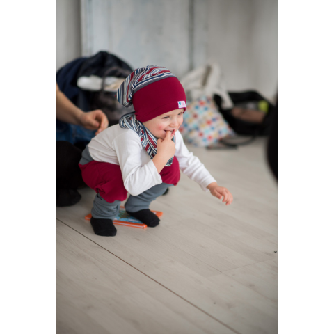 A Peggy Baby csősapka igazi kis vagány megjelenést biztosít a kicsinek. Két, színvilágában összeillő pamutanyag került összedolgozásra. A bund része rugalmasabb pamutból készül, így nem csúszkál a gyermek fején. A sapka úgy is