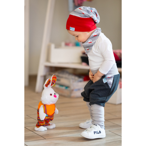 A Peggy Baby csősapka igazi kis vagány megjelenést biztosít a kicsinek. Két, színvilágában összeillő pamutanyag került összedolgozásra. A bund része rugalmasabb pamutból készül, így nem csúszkál a gyermek fején. A sapka úgy is