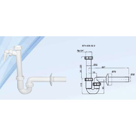 STYRON csőszifon 32mm átmérővel, mosógép csatlakozóval.
