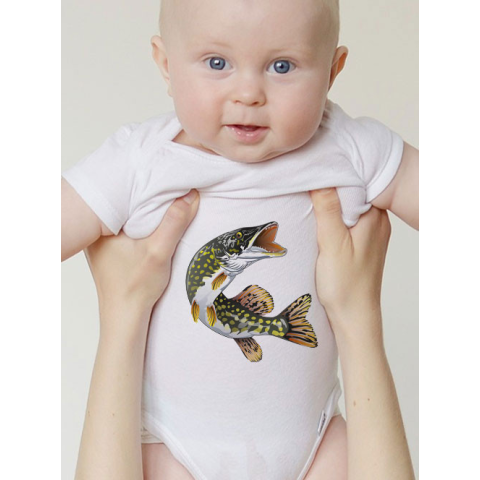 Halas body, csuka mintás kombidressz. A horgászok között is a legjobb csukafogó technikával rendelkezőknek szól ez a különleges baba body – pontosabban az ő legkisebb utánpótlásuknak. Ha van a családban vagy baráti körben olyan pecás, aki odavan a csukázá