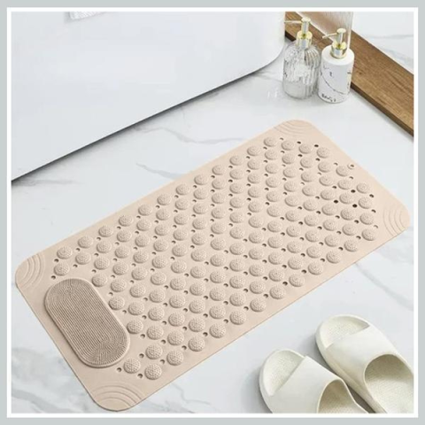 Csúszásgátló fürdőszobai szőnyeg 00024495Csúszásgátló biztonság - A tapadókorongok a szőnyeg alján hatékonyan védenek a csúszás ellen, biztosítva a stabilitást és a biztonságot párás környezetben való fürdéskor.A szőnyeg előnyei:-csúszásmentes -tapadókorongok-biztonságos-univerzális: kádhoz és -zuhanytálcához-a padlón-masszírozó-gondoskodik a higiéniáról-akasztó lyuk-kiváló minőségű anyag-könnyen tisztítható