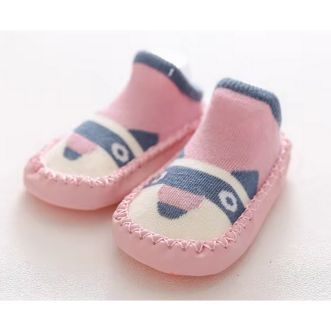 Csúszásgátlós babacipő, puha talpú babazokni - Rózsaszín róka