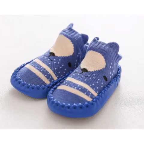 Csúszásgátlós babacipő, puha talpú babazokni - Sötétkék maci