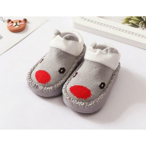 1 kép Csúszásgátlós babacipő, puha talpú babazokni - Szürke piros orr-11 cm