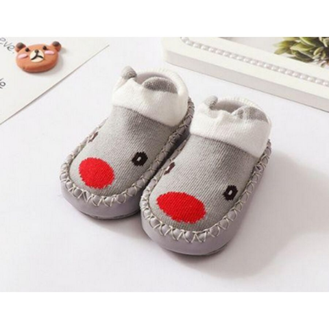 1 kép Csúszásgátlós babacipő, puha talpú babazokni - Szürke piros orr-13 cm
