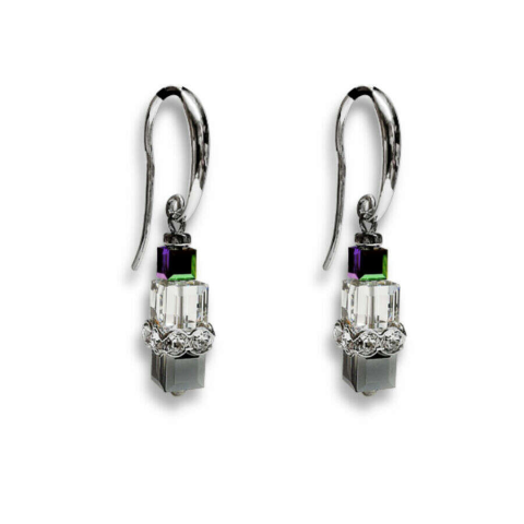 Elegáns Swarovski kristályos ezüst fülbevaló - 20 mm ✨ Ez a gyönyörű fülbevaló Swarovski kristályokkal díszített, ezüst színű fémbe van foglalva. A csiszolt kocka formájú kristályok és a rondellák elegáns megjelenést kölcsönöznek a fülbevalónak. Töké...