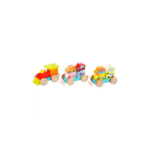 Korosztály: 2 - 6 év Szállítsd el a színes kisautókat vonatkocsikon! A Fa vonat autókkal 38 darabos készlet egy két kocsiból, valamint egy gőzmozdonyból álló építőjáték készlet, fából. Az autókat fel tudod tenni a vonatkocsira, a vasúti kocsikat egymáshoz tudod akasztani, a játékot tologathatod, vagy húzhatod is. A fa kisautók szép festéssel készültek, a változa