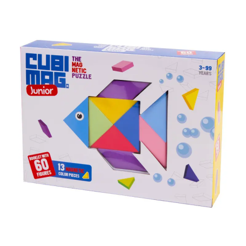 Korosztály: 3 - 99 év Cubimag Junior logikai játék Korosztály:3 éves kortól ajánlott Színes, ötletes, vagány fejlesztőjáték, mely egy nagyméretű elemek-ből álló kirakójáték. A formákat egymás mellé, illetve egymásra helyezve kell kiraknia a gyermeknek a 60 feladatlap egyikén látható képet. Az elemek stabilan illeszkednek egymáshoz, élénk színűek és változ