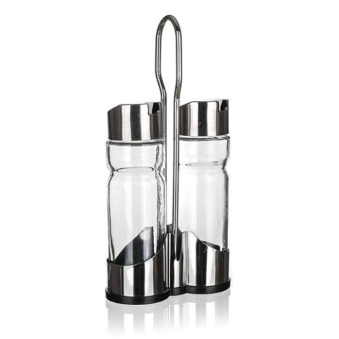 CULINARIA II ízesítő készlet 160 ml, 3 db. Tető: rozsdamentes acél 18/8, PP műanyag és szilikontömítés, acél vastagsága 0,40 mm, tárolók: üveg, állvány: rozsdamentes acél 18/0, alap: 0,40 mm, fém fogantyú 5,0 mm.
