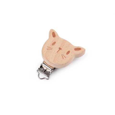 Cumilánc tartó csipesz, cica mintával. Anyaga natur fa, (nem lakkozott), fém csipesz résszel. Fa rész mérete 40x30mm
