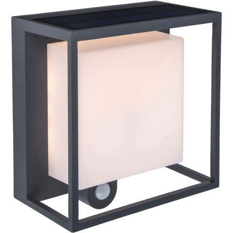 A modern Curtis kültéri fali szolárlámpa kiváló minőségű kivitelezésével és magas funkcionalitásával győz meg. Opálszínű diffúzorral és négyzet alakú, antracit színű alumínium kerettel rendelkezik. A napelemmodul teljesen integrált, és csak második pillantásra látható. A Curtis szolárlámpa a mozgásérzékelővel kombinálva kültéri használatra alkalmas. A lámpa 3 W-os, fixen beépített LED-ekkel felszerelt. A LED-ek kellemes, melegfehér fényben ragyognak.