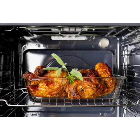 Edény a Smart Cook gyűjtemény boroszilikát üveg műanyag fedél, beépített tömítés, négy mozgatható klip, átlátszó fedél, fűtőszelep - mikrohullámú sütőben, sütő serpenyőben (fedél nélkül), egymásra rakható, mosogatógépben, használatban hűtőszekrényben/mélyhűtőben.