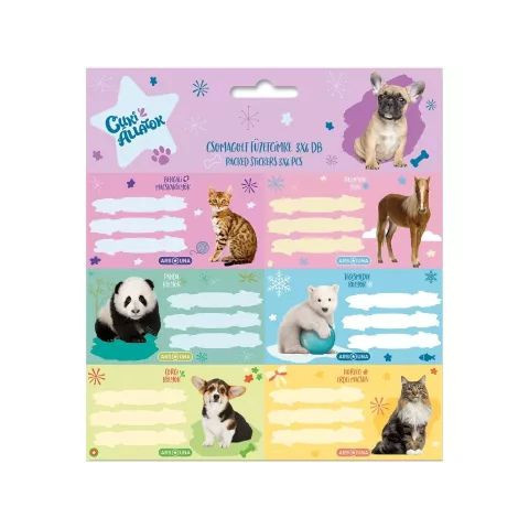 Cute Animals: Állat mintás füzetcímke - 3 x 6 db-os füzetcímke árgrafikon