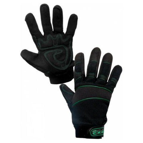 - Tenyér: viszkóz - Kézhát: légáteresztő elastan, neoprén - Gumírozott, tépőzáras mandzsetta - Habpárnák a tenyéren - EN 420, EN 388 (2122) - Cat. 2 - Tenyér: viszkóz - Kézhát: légáteresztő elastan, neoprén - Gumírozott, tépőzáras mandzsetta - Habpárná