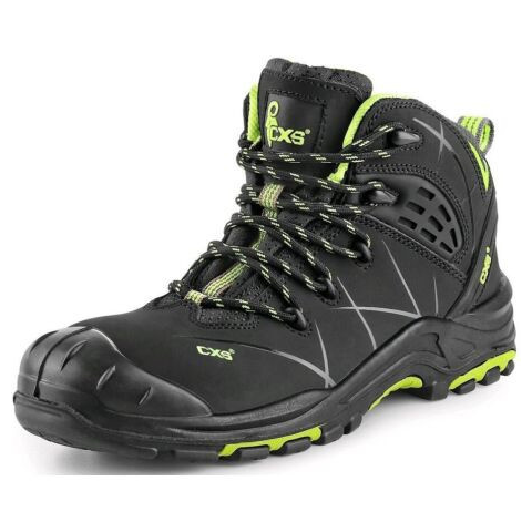 Felsőrész: 1,6-1,8 mm nubuk bőrBelső: légáteresztő, kopásálló textilTalpbetét: saroknál puha gélTalp: PU/gumi csúszásgátló, antisztatikus, olajálló, 300 oC-os kontakthőnek ellenállóOrrmerevítő: plasztikDyna-Flex® talpvédelemReflex kiegészítőkTeljesen fémm