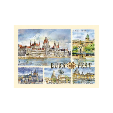 Budapest képeslap: Látványos városnézés egy pillanat alatt 📸 Ez a gyönyörű képeslap Budapest legszebb látnivalóit mutatja be egyedi, akvarell stílusban. Tökéletes ajándék szeretteinek, vagy egy emlékezetes utazás felidézésére. A képeslap B6-os méret...