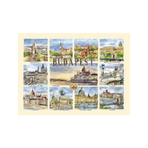 Budapest képeslap: 12 ikonikus látnivaló egy kártyán 🇭🇺 Ez a gyönyörű B6-os képeslap Budapest 12 legszebb látnivalóját mutatja be egyetlen, lenyűgöző képen.  Tökéletes ajándék szeretteinek, vagy emlékül magának egy felejthetetlen budapesti utazásról....