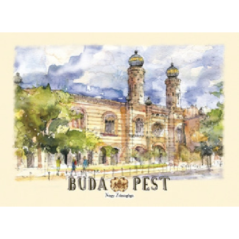 Budapesti képeslap - B6 méret - A Dohány utcai zsinagóga 🕍 Ez a gyönyörű képeslap a budapesti Dohány utcai zsinagógát ábrázolja, egy gyönyörű akvarell technikával készült festmény formájában. Tökéletes ajándék szeretteinek, vagy egy emlékezetes pill...