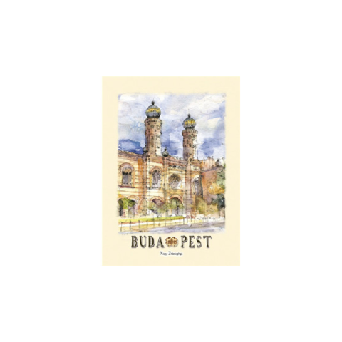 Budapesti képeslap: A Dohány utcai zsinagóga szépsége B6 méretben Ez a gyönyörű képeslap a budapesti Dohány utcai zsinagóga lenyűgöző látképét mutatja be egy gyönyörű akvarell stílusú rajzon.  Tökéletes ajándék szeretteinek, vagy egy emlékezetes emlék...