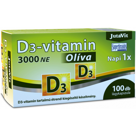 JutaVit D3-vitamin 3000NE (75µg) Olíva 100 db-os D3-vitamin tartalmú étrend-kiegészítő készítmény.