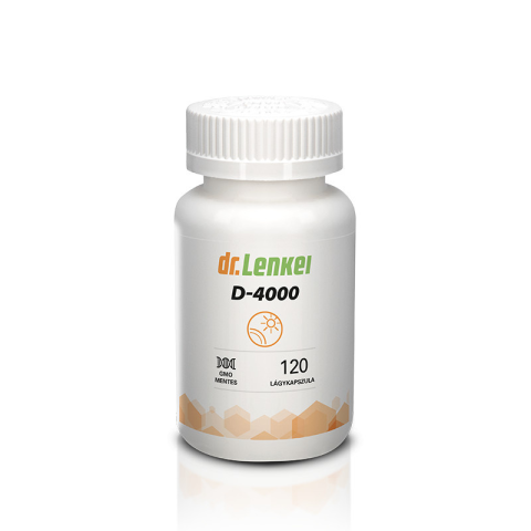 Dr. Lenkei D3-vitamin 4000 NE lágykapszula, étrend-kiegészítő, 120 db GMO-MENTES. TEJMENTES. GLUTÉNMENTES. SZÓJAMENTES Kiváló minőségű, könnyen lenyelhető, magas összetevő-tartalmú D-vitamin kapszula. Ez a kapszula rendkívül hatékonyan biztosítja a szerve