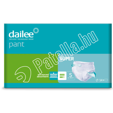 Dailee pant super nadrágpelenka S (2110 ml) - 14 db Aktív életet élő embereknek középsúlyos vizeletszivárgás esetén. Ergonómikus kialakítás mely a testhez illeszkedik A rugalmas szövet szabad mozgást és nagyfokú kényelmet biztosít. Ezek a nadrágpelenkák