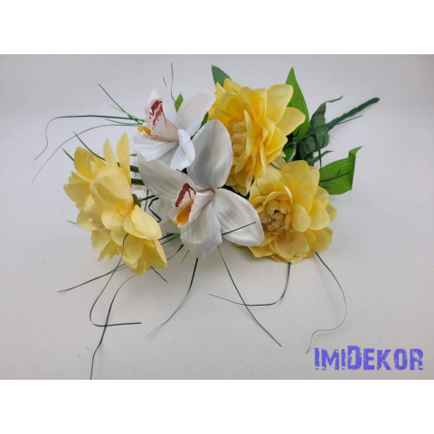 Dália-Orchidea 7 ágú selyem csokor fűszálakkal 49cm - Vaj
