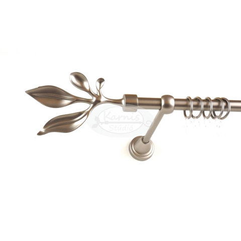 A DALLAS 240 cm-es nikkel-matt színű 1 rudas fém karnis szett tartalma: 1 db 240 cm-es nikkel-matt színű 16 mm átmérőjű fém karnisrúd 2 db Dallas típusú nikkel-matt színű végzáró 3 db falra szerelhető fém konzol 24 db fém karika műanyag ráncszedő kampóva