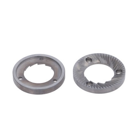 external ø 64 mm - internal ø 37 mm | thickness 8.5 mm - 3 fixing holes | Grinders made by Fiorenzato from special | M340 steel specifically designed for | suitability for contact with foodstuffs. | Guarantees high resistance to wear | and corrosion. | f