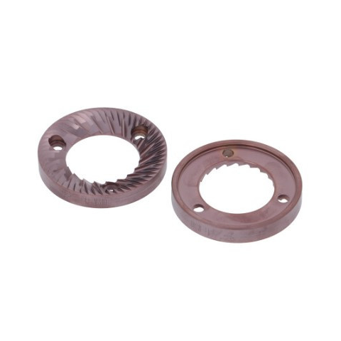 external ø 58 mm - internal ø 33 mm | thickness 8.5 mm - 3 fixing holes | Grinders made by Fiorenzato from special | M340 steel specifically designed for | suitability for contact with foodstuffs. | Guarantees high resistance to wear | and corrosion. | f