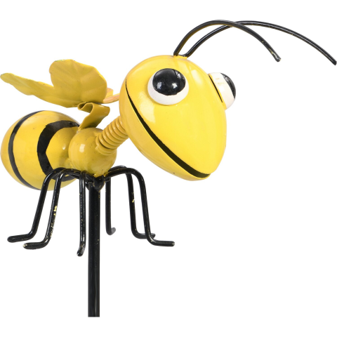 A darazsat ábrázoló földbe szúrható dísz egy figyelemfelkeltő elem az erkélyen, a teraszon és a kertben. Ágyásokban vagy virágládákban díszíthet vele. A kerti dekoráció darázs alakú, és fekete, ill. sárga színkombinációval rendelkezik. A kültéri használat mellett beltéren is dekorálhat vele. A földbe szúrható dekoráció robusztus fémből készült. Méretei 95 cm x 7 cm x 14,5 cm (Ma x Sz x Mé).