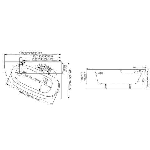 1 kép Daria aszimmetrikus akril kád 140x95 jobbos