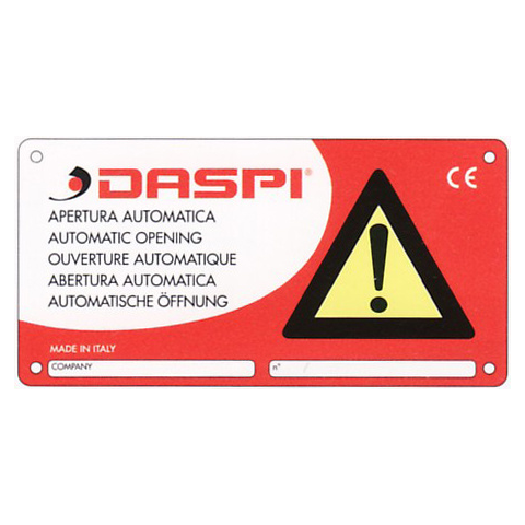 Automata kapu működésére figyelmeztető rozsdamentes fémtábla 5 nyelvű felirattal A tábla tulajdonságai 5 nyelvű figyelmeztető felirat (angol, olasz, francia, spanyol, német). Piros alapszínű, figyelemfelkeltő grafikával. Időjárásálló kivitelű. Rozsdamentes fémlemez. RoHS tanúsítvány.