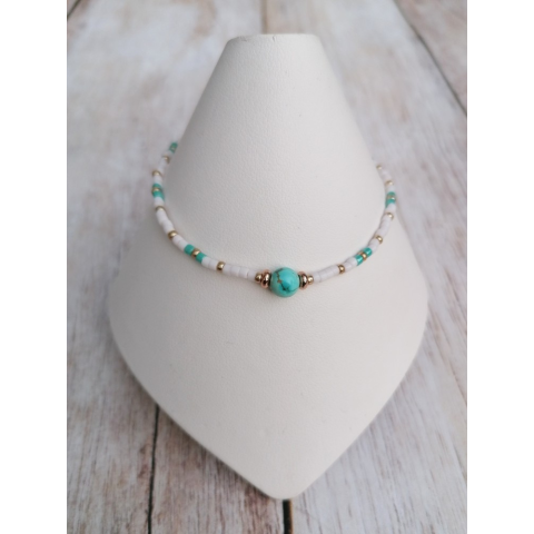 DASY karkötő, a kifinomult stílus kedvelőinek. Egyedi kézzel készített nyàri minimál karkötő. A karkötő magas minőségű Miyuki és Delica gyöngyök és Türkenit felhasználásával készült. Mérete állítható. Alap mèrete:16cm Türkenit gyöngy mérete :