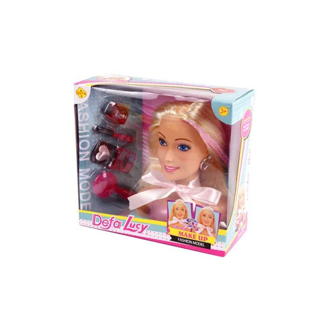 Fesd ki a babafejet, és készíts neki színes hajtincseket! A Defa Lucy sminkelhető babafej egy nagyobb méretű, hosszú tincsekkel készült babafej, amin a sminkelést, hajfestést tudod gyakorolni. A baba masnit hord a nyakában, a készletben különböző szemfestékeket, hajkefét, és arcfestékeket is találsz, amikkel egyedi arcot készíthetsz. A Defa Lucy sminkelhető babafej megtanít, hogyan kell szép sminkeket készíteni, és még a kézügyességet is fejleszti. A fej méret
