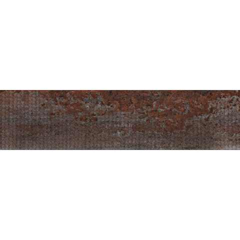Élcsiszolt. Fagyálló. Dekor színárnyalata ruggine fémes kivitelben mérete 29,7x119,6 cm vastagsága 10 mm matt felülettel. Beltérbe és kültérbe is alkalmas. Nagy eltérésekkel a színárnyalatban, a felületi textúrában és a rajzban.PEI 5 – Nagyon erős kopásállóság, kereskedelmi igénybevételnek kitett területek - szállodák, bevásárlóközpontok, éttermek, iskolák