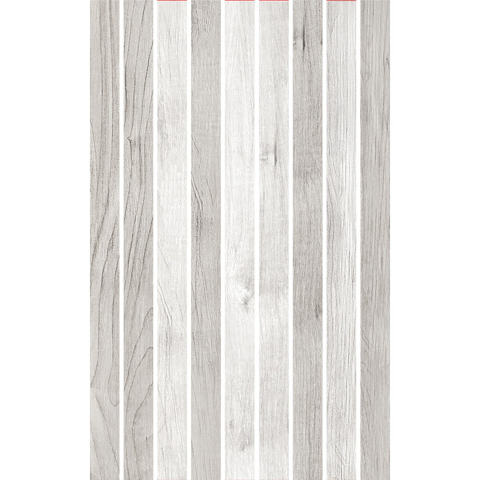 Equador fényes felületű, világosszürke csíkos dekor falicsempe, amely ideális választás fürdőszoba illetve konyha burkolatának. A kerámia anyagú csempe mérete: 25 cm x 40 cm, fa megjelenésű.