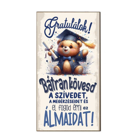 Aranyos kis ajándék ballagóknak Mérete: 7,5 x 14 cm Anyaga: fa/papír, hátoldalán mágnes csíkkal.