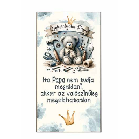 Aranyos kis ajándék nagypapáknak, nem csak apák napjára, minden alkalomra. Mérete: 7,5 x 14 cm Anyaga: fa/papír, hátoldalán mágnes csíkkal.