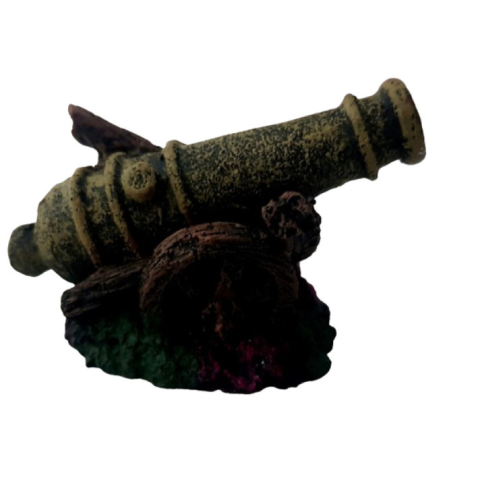 A dekor műgyanta ágyú (9,5×7×7 cm) egy antik hatású, részletgazdag akváriumi dísz, amely egyedi, kalózos hangulatot teremt a víz alatt. pH-semleges, nem mérgező anyagból készült, így biztonságos minden akváriumi élőlény számára. Búvóhelyként is funkcionál