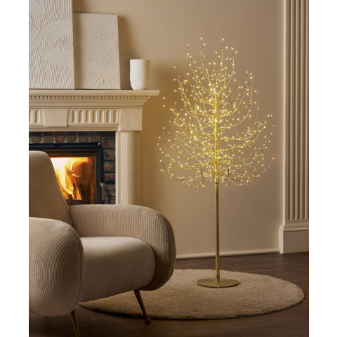 Dekoratív Faggio fa, 900 LED, 180 cm, IP44, arany Vigyen egy csipetnyi kifinomultságot és varázslatot otthonába ezzel a dekoratív Faggio fával, amely meleg arany árnyalatú (arany) LED-ekkel van felszerelve. Ez a díszfa tökéletes otthoni dekorációnak...