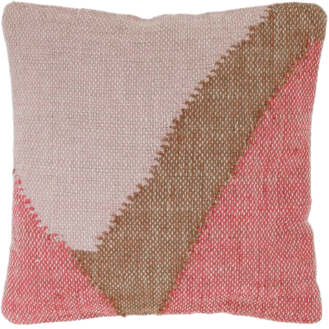 Dekoratív párna VETO mérete 45 x 45 cm, modern geometriai mintája lenyűgöző a rózsaszín, bézs és barna finom és erősebb árnyalataiban. Szőtt felülete természetes és strukturált hatást kelt, ami az egész enteriőrnek érdekes vizuális és tapintható elemet ad. A párna ideális, mint design kiegészítő, amely feldobja a teret felesleges túlzások nélkül.