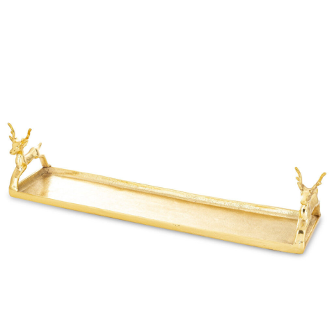 Arany Szarvas Dekoratív Tálca - Elegáns Kiegészítő Otthonodba ✨ Ez az arany színű, fémből készült dekoratív tálca egyedi szarvas motívummal díszítve stílusos és kifinomult kiegészítője lehet otthonodnak. Tökéletes választás a nappaliba, étkezőbe vagy...