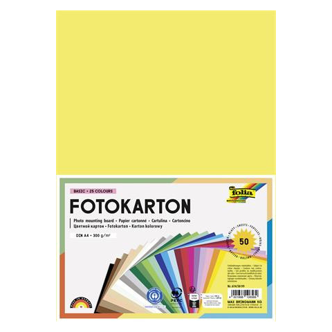 Dekorkarton, 2 oldalas, A4, 300 g, 25x2 lap, FOLIA, vegyes színek Klasszikus kézműves karton, erős minőség, ideális sokféle kézműves munkához. Kiváló minőség és színek ragyogása, 100% átfestett, gyönyörű, motiváló színek. -kétoldalas: matt/matt felü