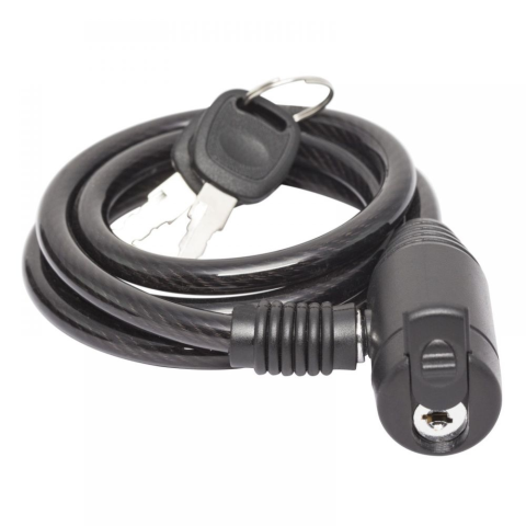 Kerékpár lakat (kábelzár). A bevont acélkábel ellenállóbb a vágó támadásokkal szemben. Minőségi zárszerkezet, 2 db kulccsal. Méret: 8 mm x 100 cm Szín: fekete Kerékpár lakat (kábelzár). A bevont acélkábel ellenállóbb a vágó támadásokkal szemben.