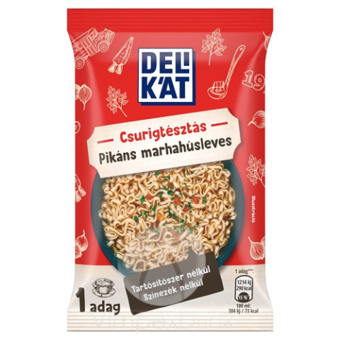 Delikát Csurigtésztás marhahúslev. pik.60g Az Delikát Csurigtésztás marhahúslev. egy gyors és ízletes megoldás, ha finom levest szeretnél készíteni mindössze pár perc alatt. A 60 g-os kiszerelés praktikus választás, akár hétköznapi ebédre, akár úton-